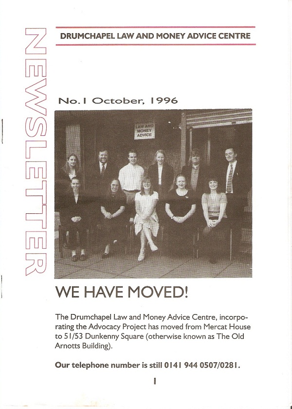 Look what I found while clearing out the spare room. The good old Drumchapel Law & Money Advice Centre, where I was a student placement, then volunteer, then money adviser over a number of years. Back in the days when I knew about social security law (a mystery to me now) and where I made my first baby steps into education law with a booklet on bullying. That’s me at the back, looking young and dapper in my shirt-sleeves, if you’re wondering!
